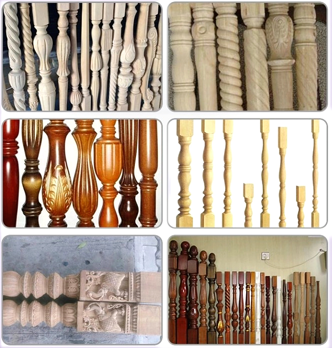السلالم ، درابزينات الدرج ، أعمدة الدرج الجديدة ؛ أرجل طاولة الطعام ؛ أرجل طاولة النهاية ؛ أرجل طاولة الأريكة ؛ أرجل البراز ؛ أرجل الكرسي ؛ أعمدة ذراع الكرسي ؛ نقالات الكرسي ؛ قضبان السرير ؛ أعمدة المصابيح ؛ مضارب البيسبول وما إلى ذلك.